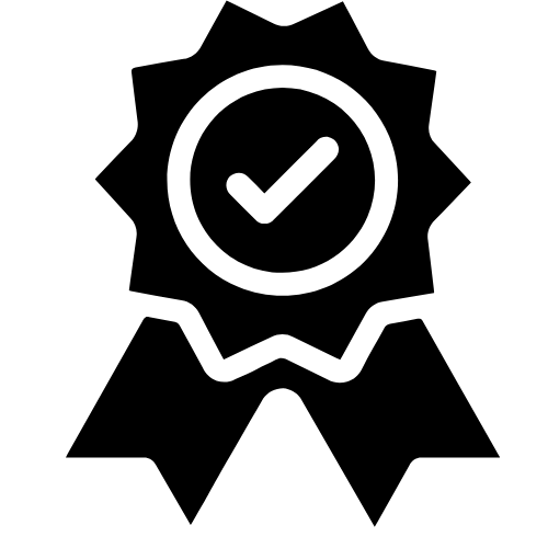• Black outline of a ribbon with the word 'warranty' in the center, with stars above and below it